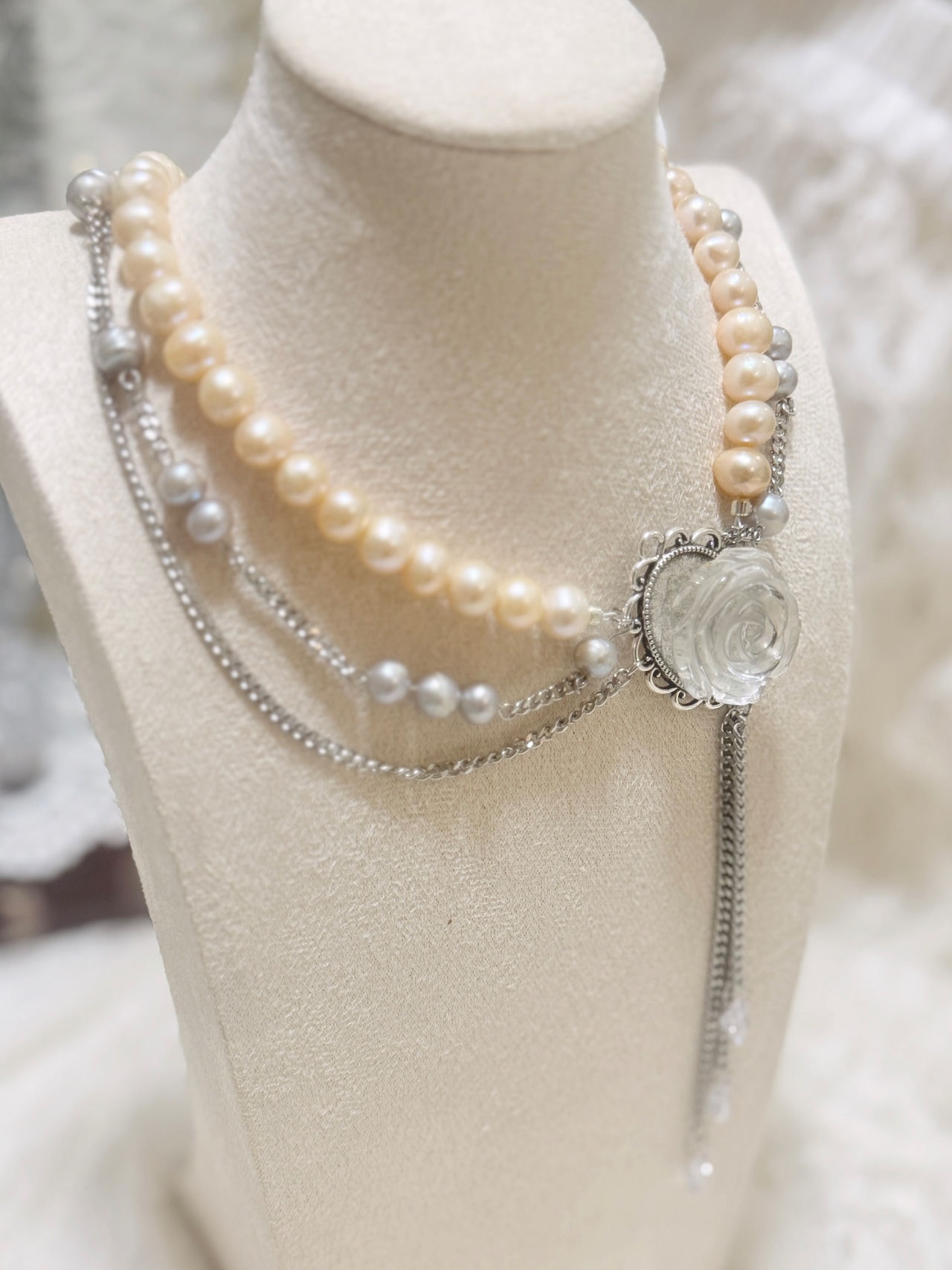 ピンクがかった淡水パールとグレーの淡水パールが上品なネックレス✧*。