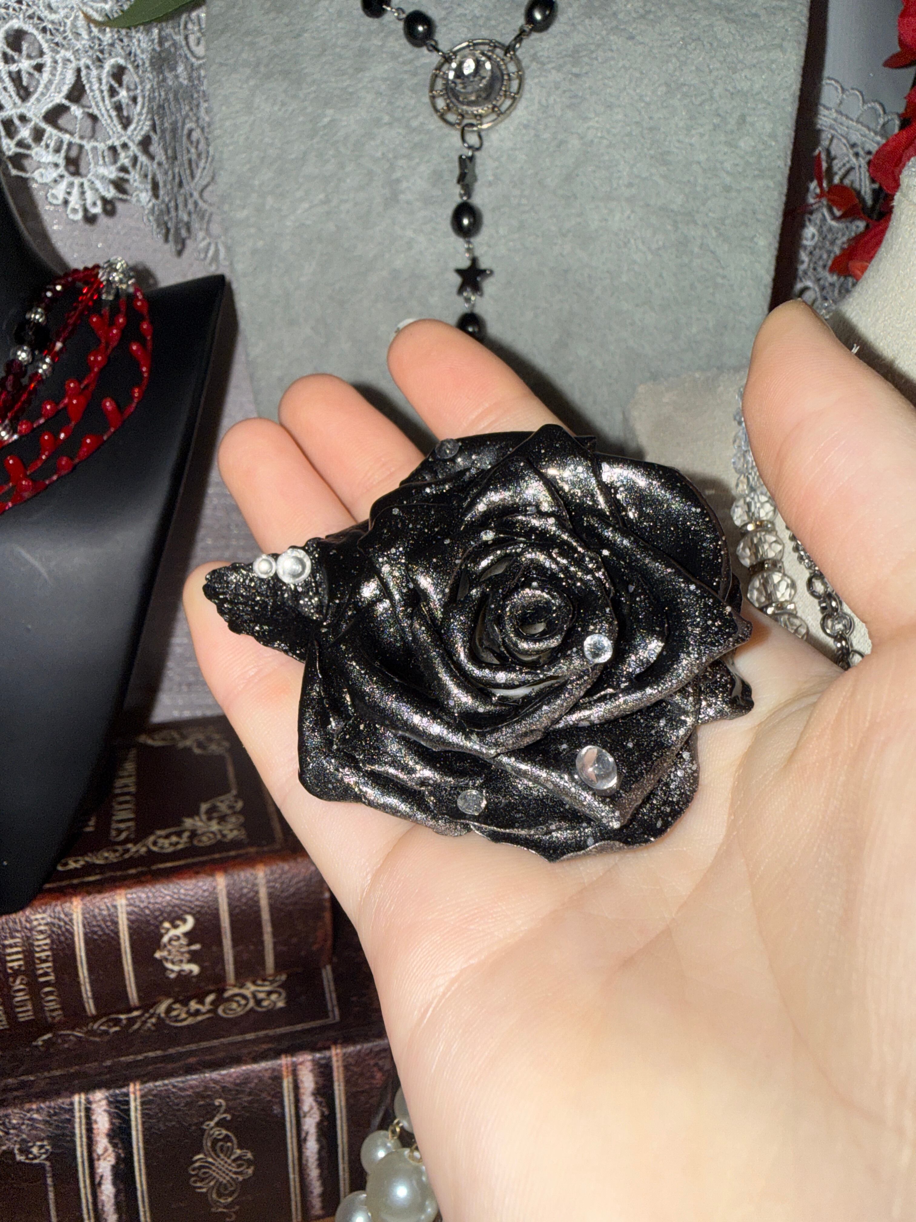 手作業で1枚1枚粘土をねってつくった黒薔薇です!