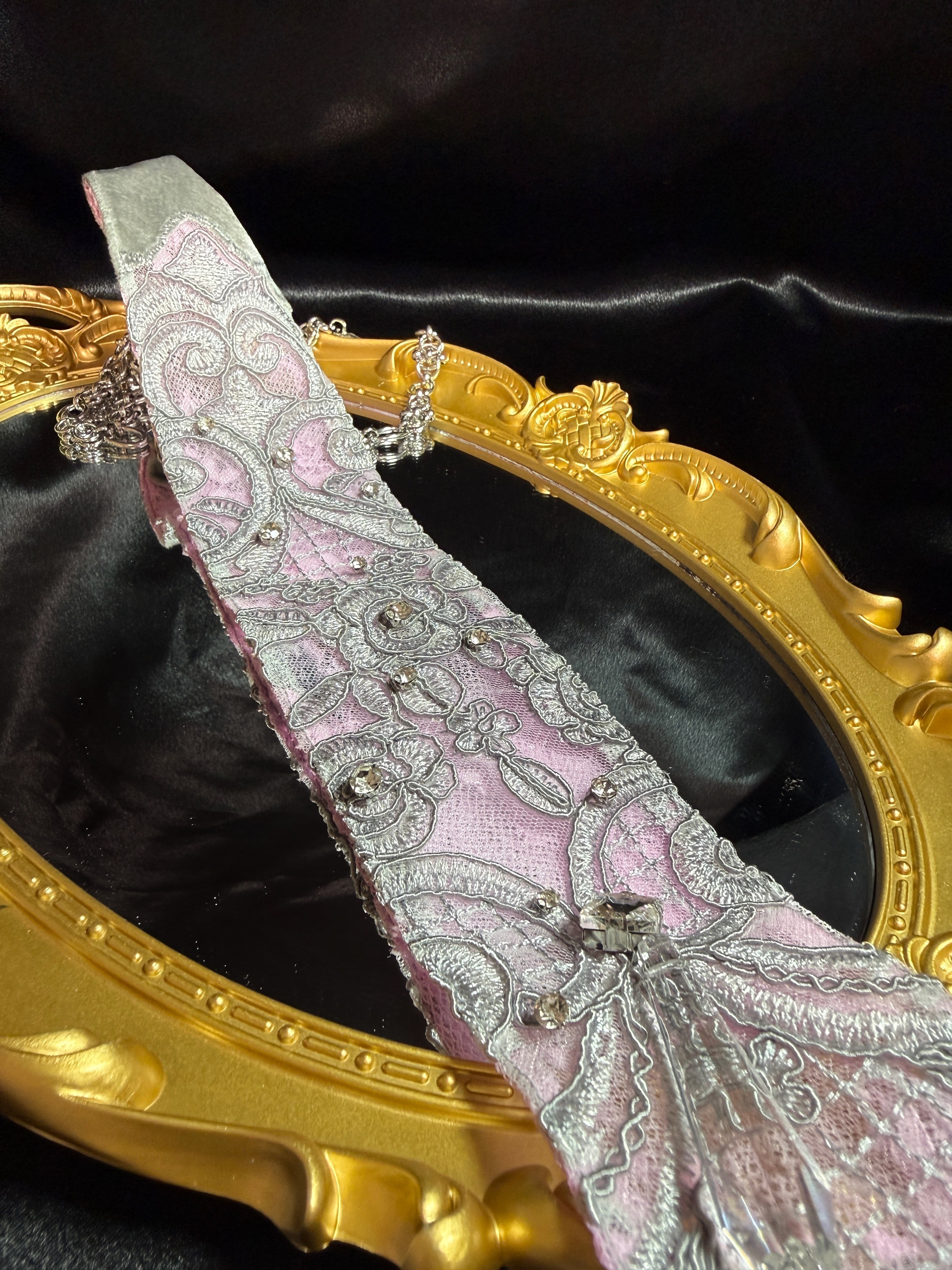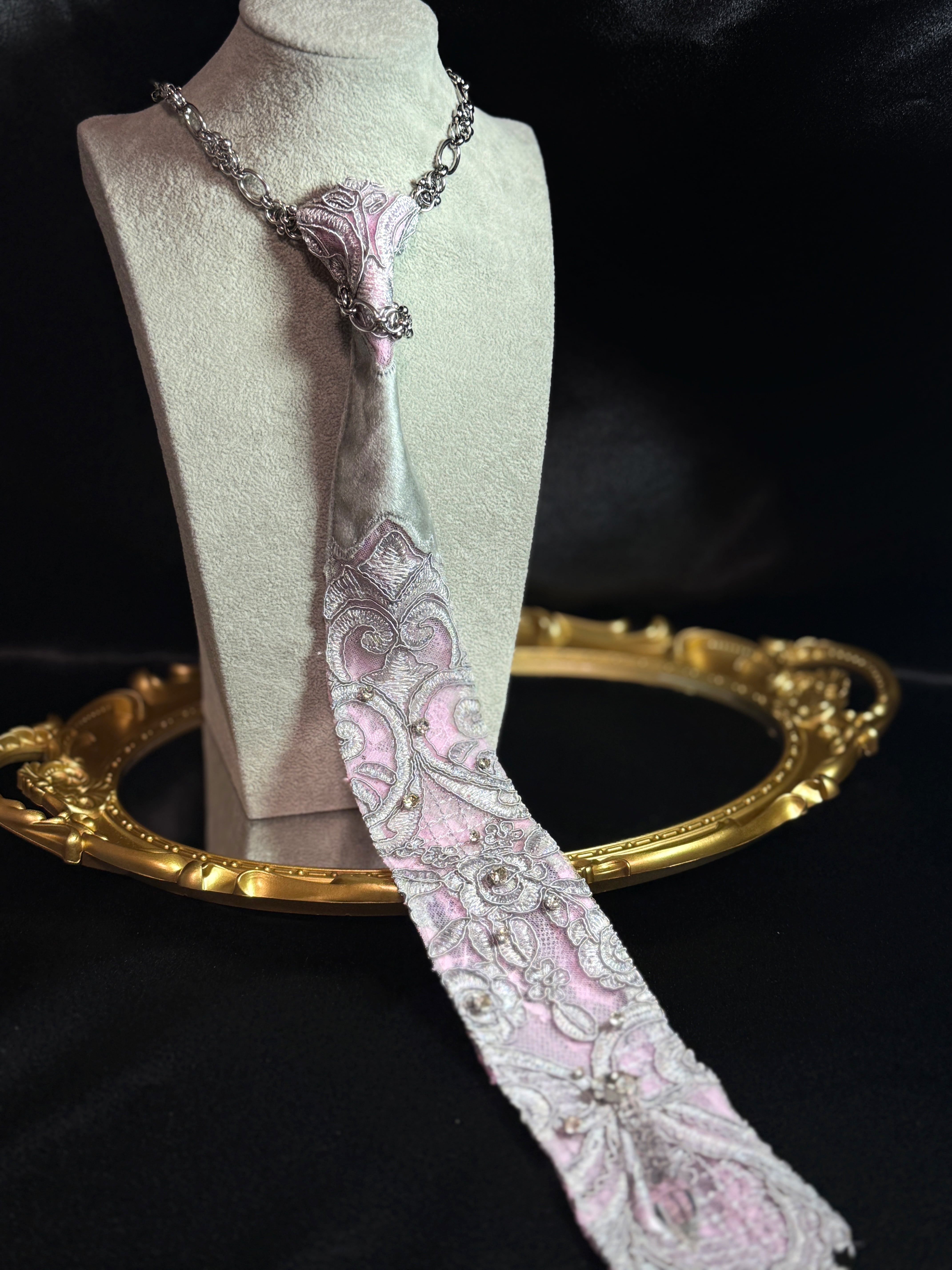 Pink Gray lace tie